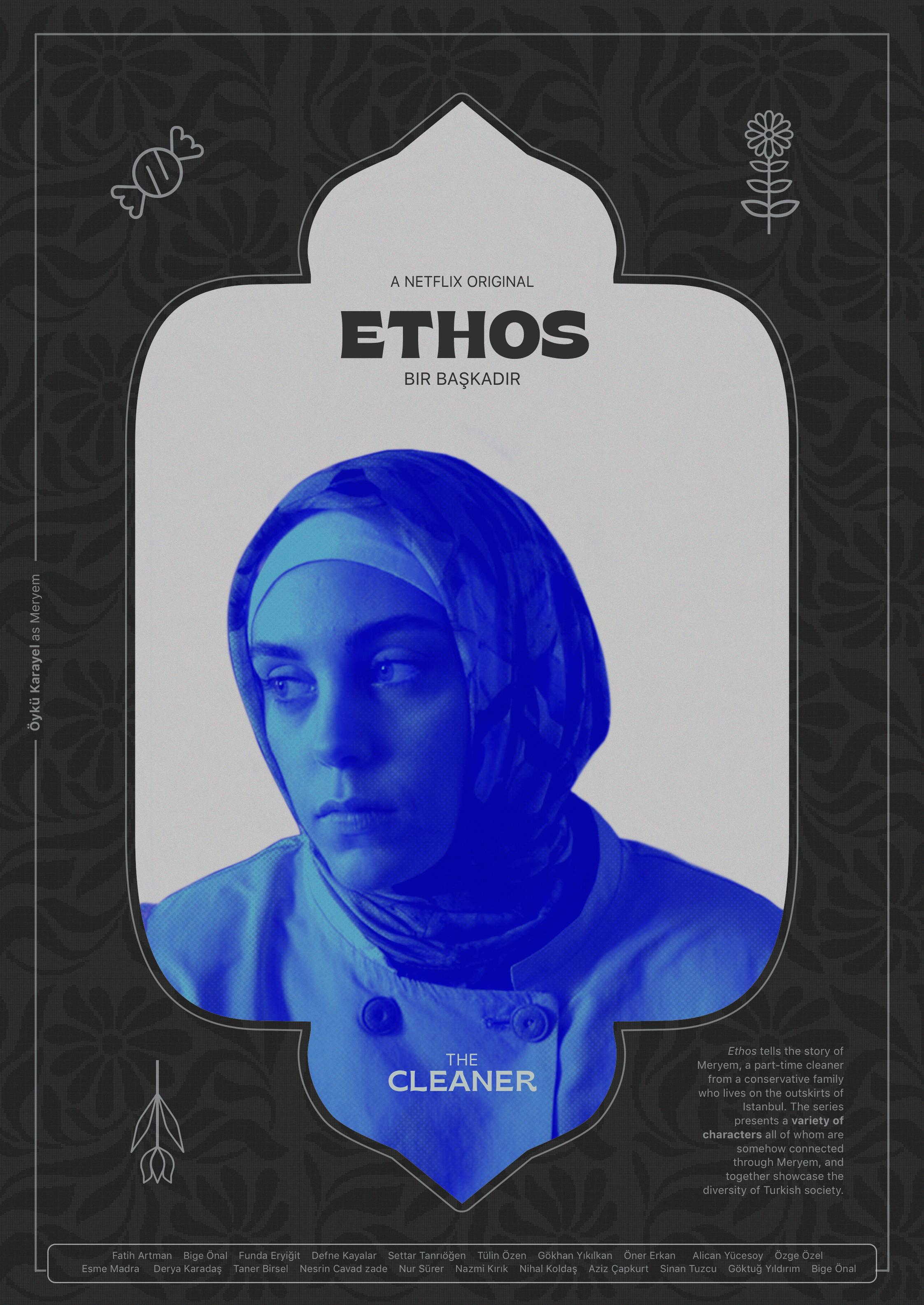 A Série Da Netflix Bir Başkadır, ou Ethos, apresenta um grupo de indivíduos em Istambul que transcendem barreiras socioculturais e descobrem uma conexão entre eles. Uma série de posters apresenta os personagens e suas vivências dando ênfase no uso de elementos, sentimentos e cores que os destacam durante a narrativa do personagem.